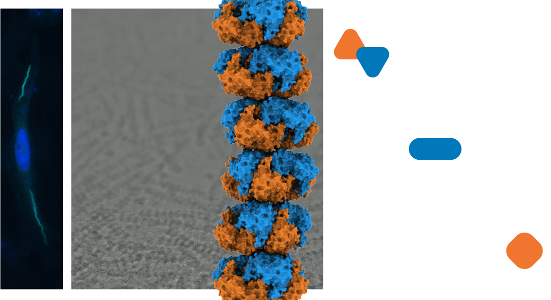 We investigate the structure-function mechanisms in proteins that underlie disease and generate species-specific biological traits across the domains of life, pairing biochemical and structural studies with studies at the cellular and organismal level. To accomplish this, we apply a variety of techniques at a range of biological scales, including cryo-EM, cryo-ET, biochemical and biophysical assays, and tissue cell culture. Past work includes defining the substrate profile and in vivo effects of a bacterial virulence factor, helping to settle a long-running debate about the cytoskeletal protein actin from the parasite T. gondii, and identifying a previously unobserved antibody-binding mechanism. Current work focuses on the physical organization of metabolism. Read more below.